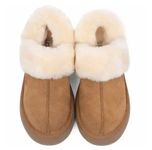 Ощутите непревзойденный комфорт и стиль с Ugg Slippers Disquette Chestnut. Эти уютные тапочки, выполненные из натуральной замши и мягкого овечьего меха, подарят вашим ногам теплоту и элегантность. Идеальны для домашнего уюта и расслабленных выходных.