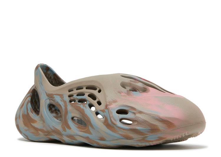 В модели adidas Yeezy Foam Runner 'MX Sand Grey' три нейтральных цвета сочетаются в цельном пенопластовом верхе. Сдержанный оттенок загара составляет основу палитры, а на пятке, боковых панелях и подошве присутствуют вихревые акценты серого и темно-бежевого цветов. Вентиляционные отверстия придают обуви динамичный вид и обеспечивают комфортное дыхание. Волнистый рисунок подошвы обеспечивает улучшенное сцепление с поверхностью, а скульптурная пятка предназначена для поддержки задней части стопы.